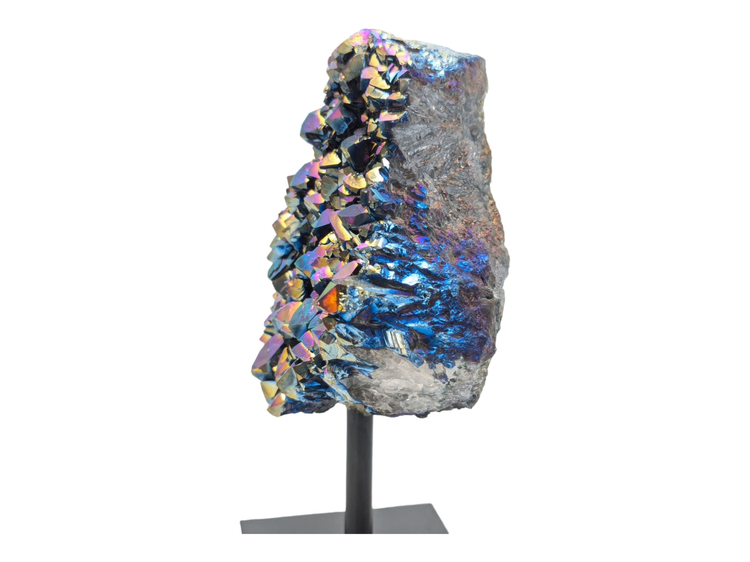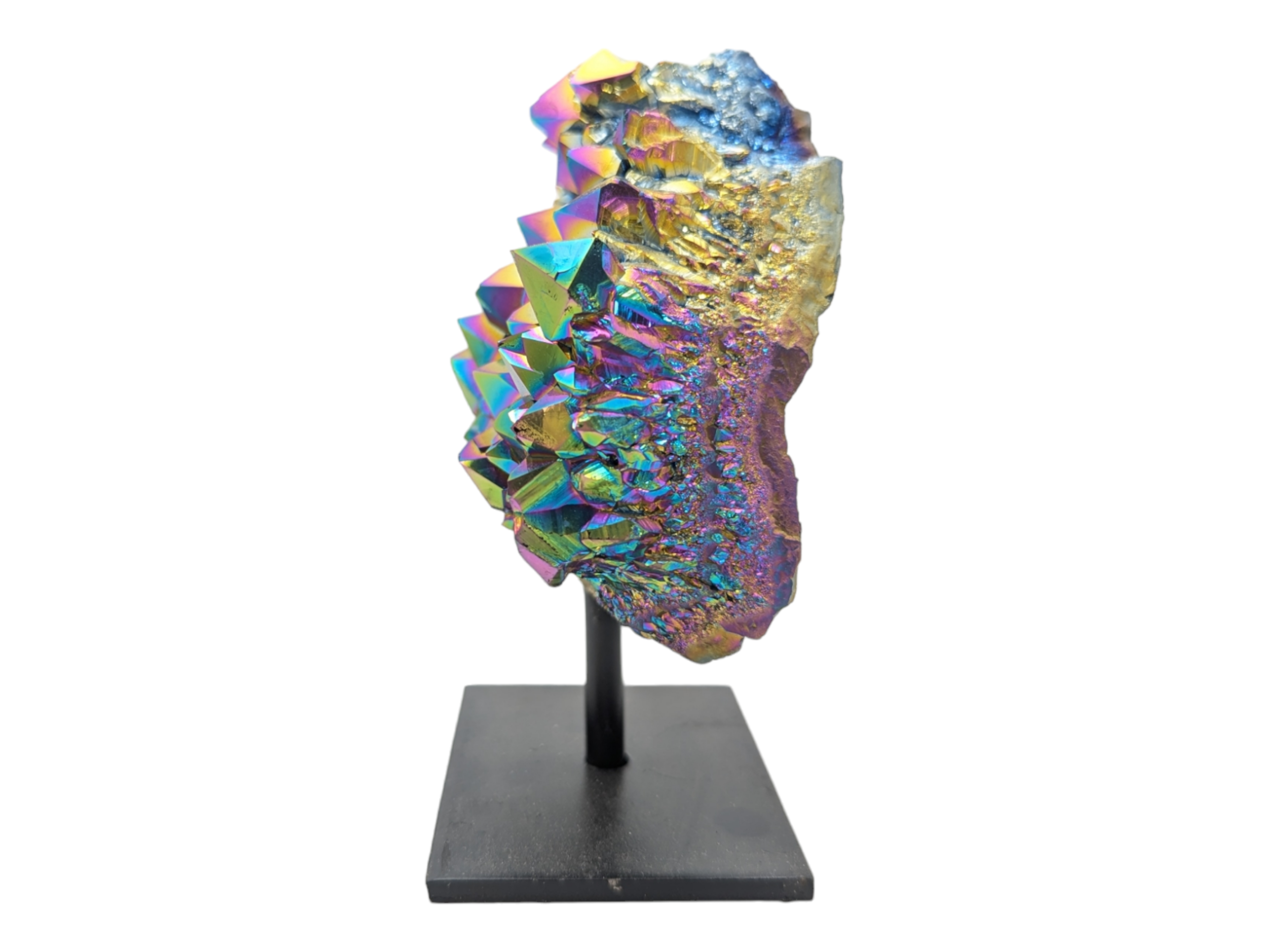 Titanium Quartz is a natural clear quartz that has been molecularly bonded with titanium.